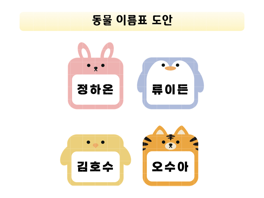[라온양식] 동물 이름표 가로 세로 어린이 이름표 도안 무료 공유