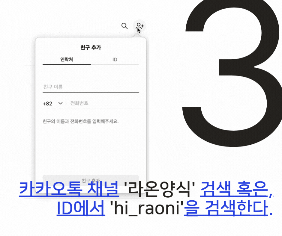 1. 카카오톡 채널에서 '라온양식' 검색 후 채널 추가